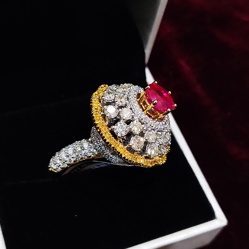 Red Ruby velvet sparkly diamond ring